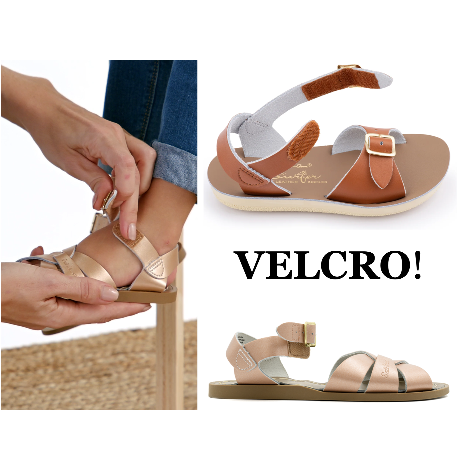 Salt Water Sandals are made from beautiful water-friendly leather and hand-finished with classic brass buckles. People have been rocking their Salties since Walter Hoy first crafted a few pairs from off-cuts of military boot leather back in the 1940s.